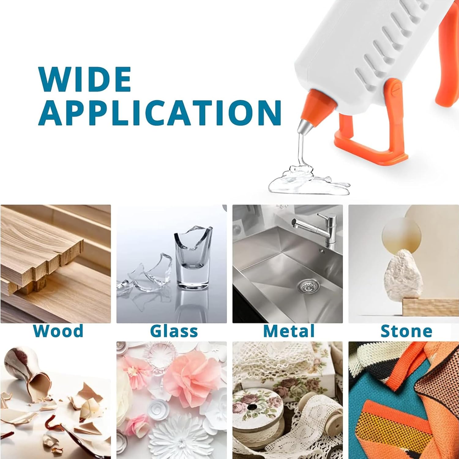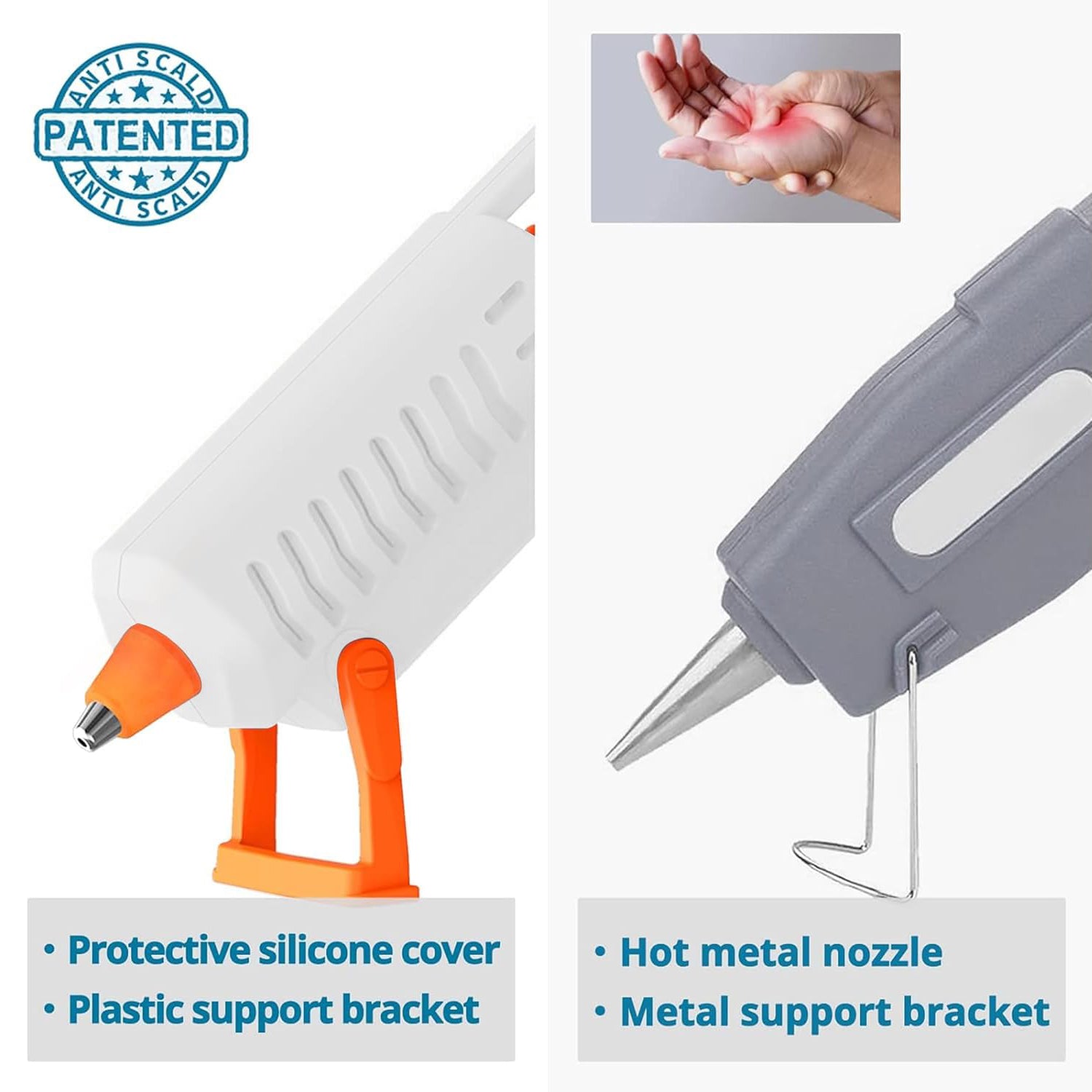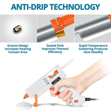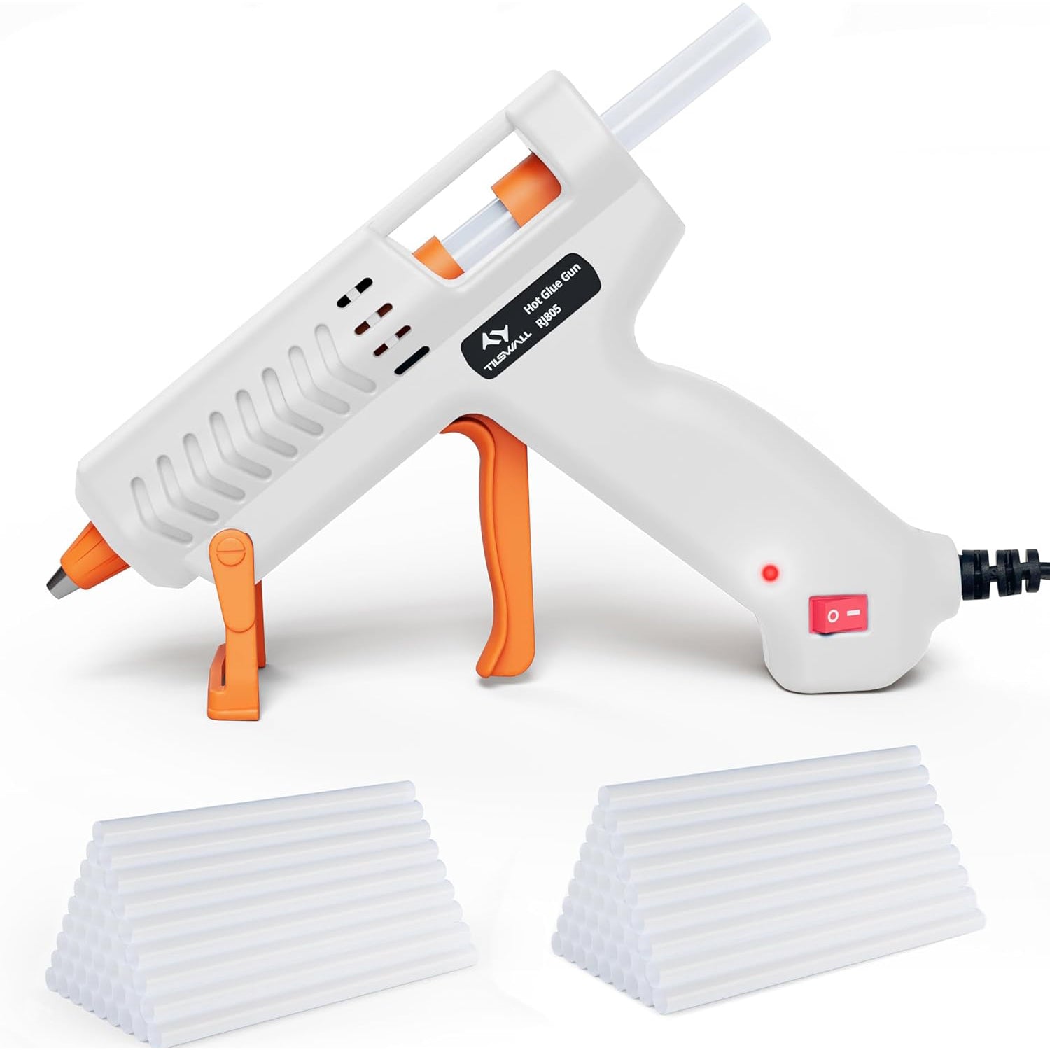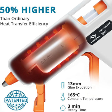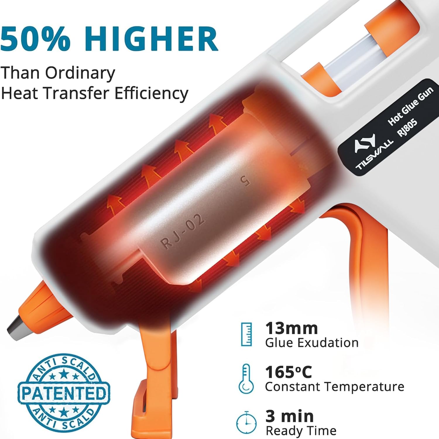 Tilswall pistola de pegamento caliente mit 50W starker Leistung erhitzt sich in 3 Minuten und wenn es eine bestimmte Temperatur erreicht hat, wird es konstante Temperatur von 165 ° C während der Verwendung halten, wodurch die Wartezeit rassant verringert und die Arbeitseffienz verbessern wird.