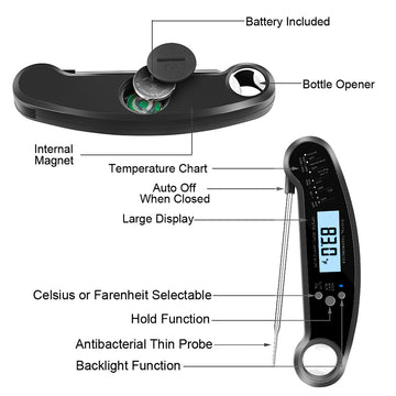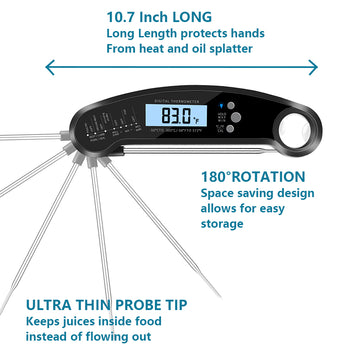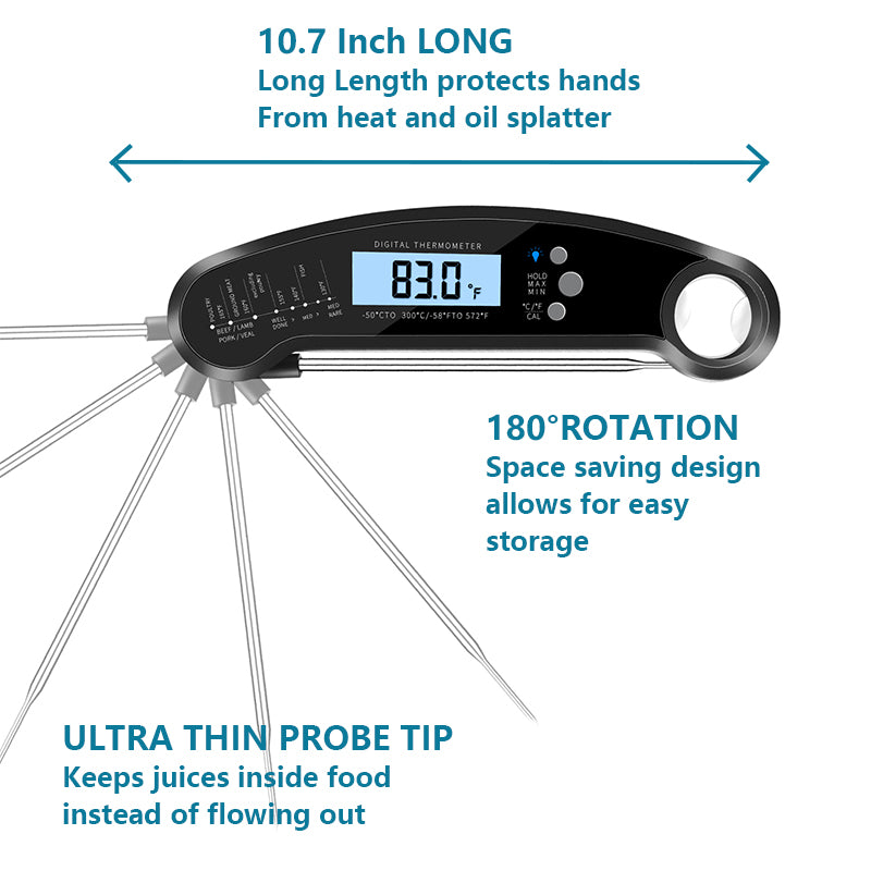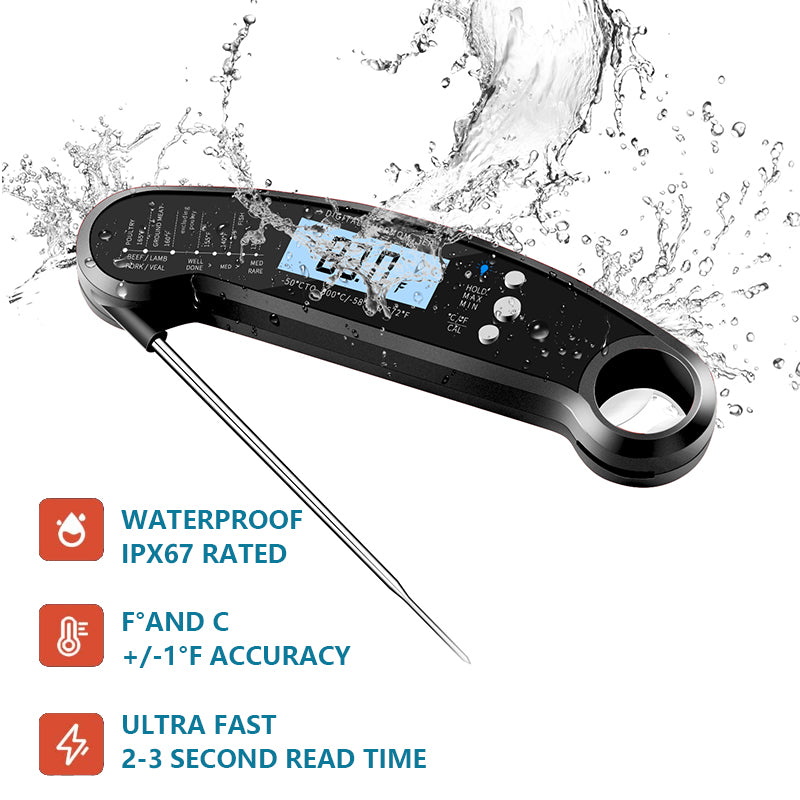 2–3 Sekunden schnelle Temperaturmessung, Genauigkeit ±1 °F, Temperaturbereich –58 °F bis 572 °F. Dieses Fleischthermometer mit Sofortanzeige ist Ihr unverzichtbares Küchengerät und eignet sich zum Messen der Temperatur aller Arten von Kochthermometern.