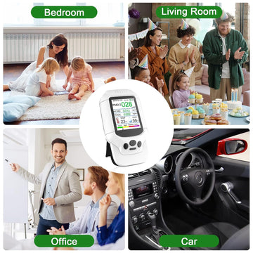 Führen Sie Stichprobenmessungen durch oder lassen Sie das Gerät zur kontinuierlichen Überwachung der Raumluftqualität eingeschaltet. Der integrierte Standfuß ermöglicht es, das Luftmessgerät überall unbeaufsichtigt aufzustellen. Dieses handliche Gerät kann zur Überwachung der Luftqualität zu Hause, in Yogastudios, Büros, Kinderzimmern, im Auto und an vielen weiteren Orten verwendet werden.