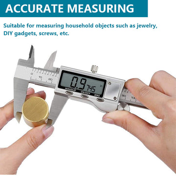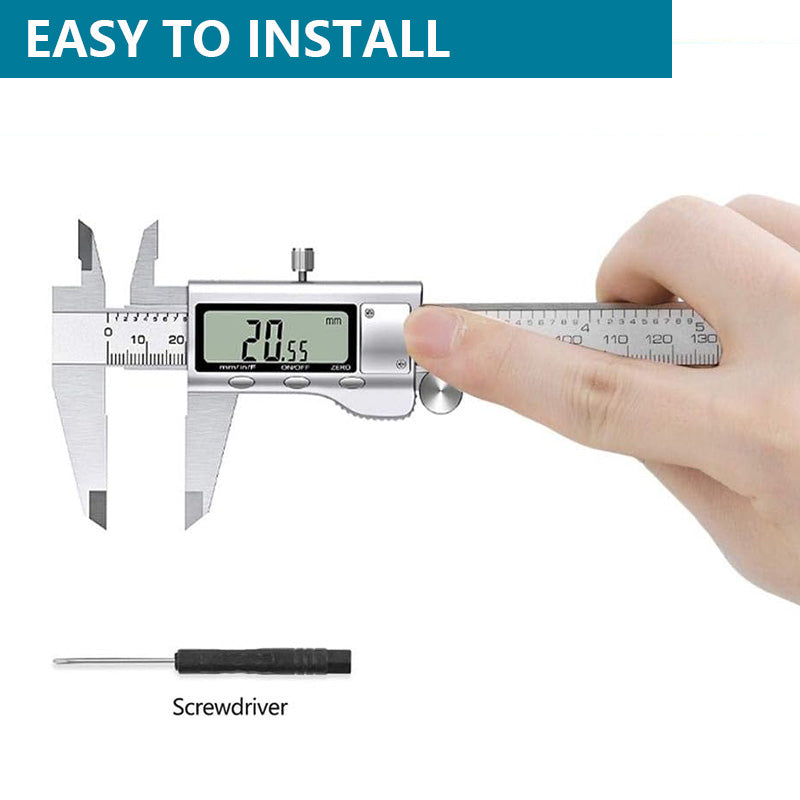 Die Lebensdauer dieses digitalen Messschiebers aus Edelstahl ist länger als die von Messschiebern mit Kunststoff- oder Kohlefaserteilen. Batteriebetrieben, inklusive vorinstallierter Batterie.
