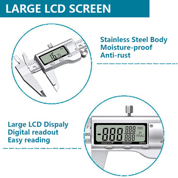 Digitaler Messschieber, Messwerkzeug aus Edelstahl, digitaler Messschieber mit großem LCD-Bildschirm, einfache Umschaltung zwischen Zoll, metrischen und Bruchmaßen, für Heimwerker/Haushalt