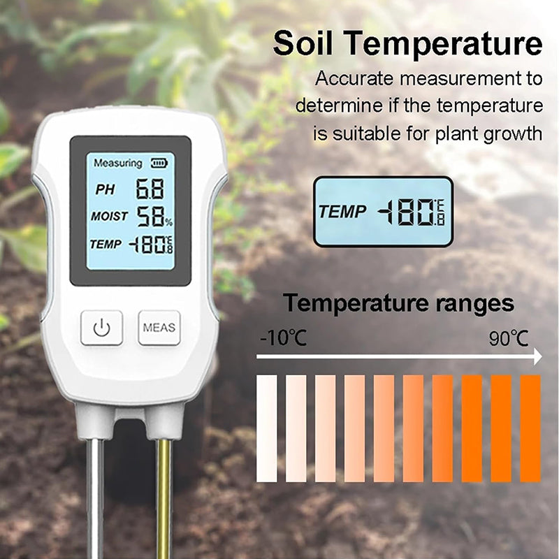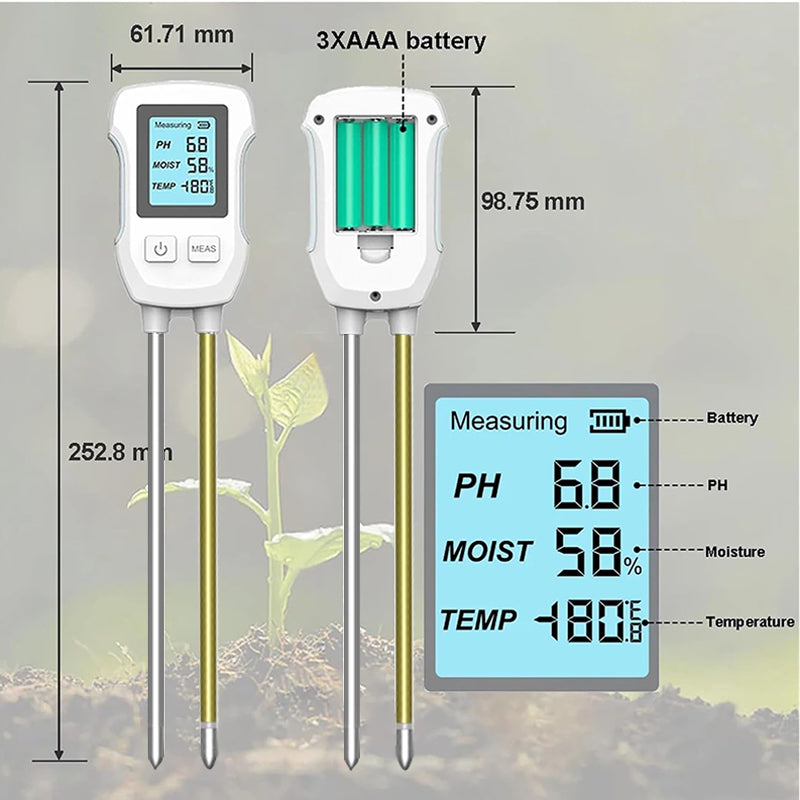Der pH-Wert des Bodens beeinflusst das Pflanzenwachstum direkt. Mit unserem Bodentester können Sie den Säure- und Alkalitätsgehalt jederzeit und überall überwachen. Er bietet außerdem Temperatur- und Feuchtigkeitsmessung, sodass Sie mühelos optimale Gewächshausbedingungen schaffen können.