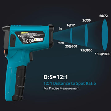 🔥【Multi-Funktionen】(Baterrie im Lieferumfang) Durch das farbige LCD-Display mit Hintergrundbeleuchtung werden Sie die Daten trotz schlechter Lichtumgebung auch besser unterscheiden. MAX / HOLD-Datenfunktion; Unterstützt das Umschalten zwischen Celsius und Fah Celsius (℃ / ℉); Messdatenspeicherung; Anzeige für niedrigen Batteriestand und automatische Abschaltfunktion in 30 Sekunden zur Verlängerung der Batterielebensdauer. Reaktionszeit: <0,5 s. Distanzpunktverhältnis: 12:1