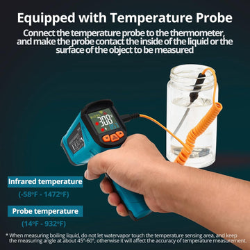🔥 【Zubehör mit K-Sonde】Um alltägliche und industrielle unterschiedliche Anforderungen zu erfüllen, hat Tilswall eine K-Sonde geliefert, womit Sie nicht nur die Temperatur des Objektsoberflächers sondern auch die innere Temperatur des Truthahns, des Fleisches, oder des Flüssiges messen können. Liferumfang: Tilswall Infrarot-Thermometer, 2 x Baterrien, 1 x K-Sonde, 1 x Bernutzerhandbuch.