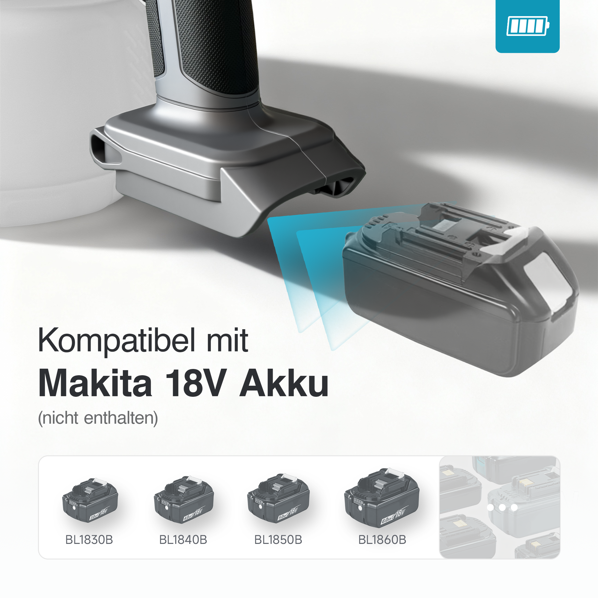 Die akkubetriebene Farbsprühpistole ist kompatibel mit Makita 18V Akkus (BL1860B/BL1850B/BL1840B/BL1830B/BL1820B/BL1815N, Akku nicht im Lieferumfang). Ideal für Innen- und Außenbereiche ohne Stromanschluss: Wände, Zäune, Möbel, Schränke, Türen, Garagen etc.