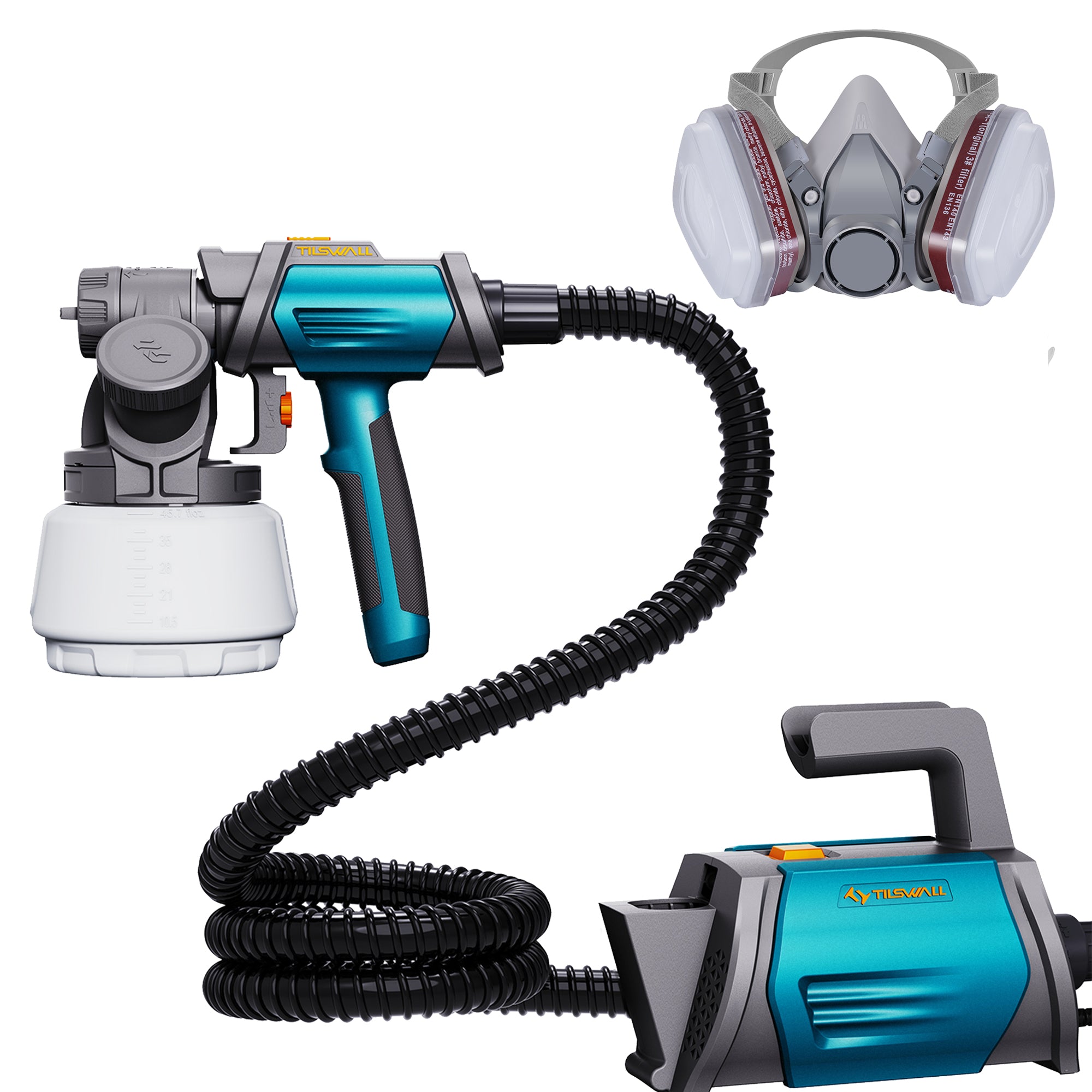 Tilswall-farbsprühpistole wandfarbe unterstützt maximale Spritzviskosität von 120 din-S, kompatibel mit einer Vielzahl von Farben (Ölbasis, Wasserbasis, Farbe). Sein HVLP einstellbarer Steuerknopf verbessert