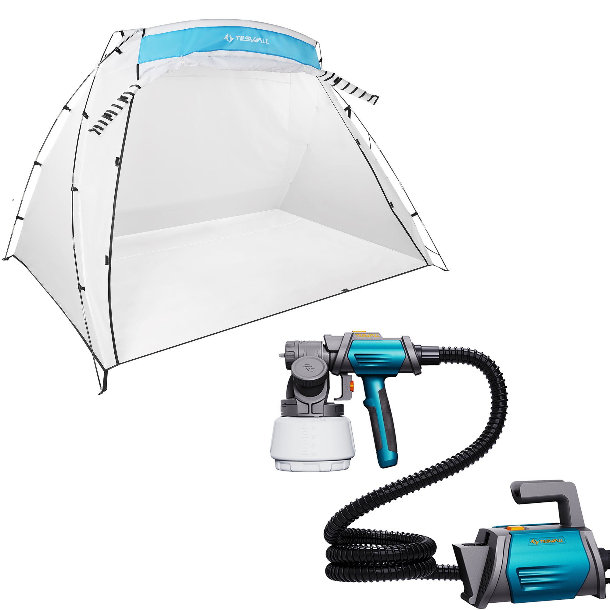 Die Tilswall 800w farbsprühsystem hat ein geteiltes Kopf- und Hauptkörperdesign und einen Hilfsriemen, um das Gewicht des Handstücks zu minimieren und die Spritzarbeiten zu erleichtern. Der mitgelieferte 2,5 m lange Schlauch und das 3 m lange Netzkabel vergrößern effektiv den Aktionsradius, was die Sprühbewegungen bequemer und flexibler macht