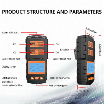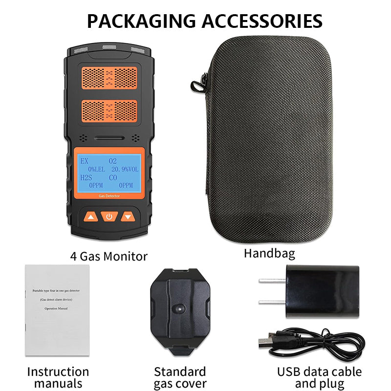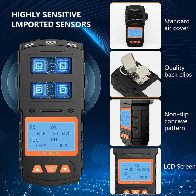【4 Gasmonitor Multiple】 X-4 ist ein tragbarer Gasmonitor für Kohlenmonoxid (CO), Sauerstoff (O2), Schwefelwasserstoff (H2S) und brennbare (UEG) 4. Er besteht aus einem hochfesten Materialgehäuse und importierten Sensoren mit einem Lebensdauer von 2–5 Jahren (UEG, HzS, C0: 2–3 Jahre, O2: 5 Jahre)